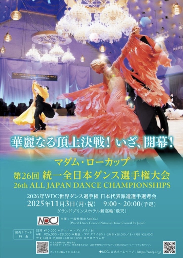 2025年11月3日(月・祝)グランドプリンスホテル新高輪飛天にて開催される「マダム・ローカップ 第26回 統一全日本ダンス選手権大会」をおどりびよりが速報いたします!